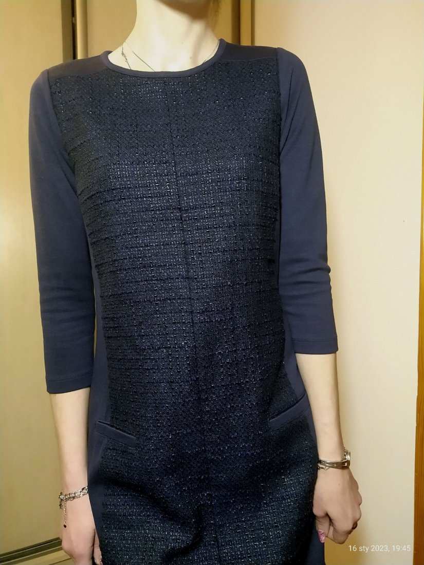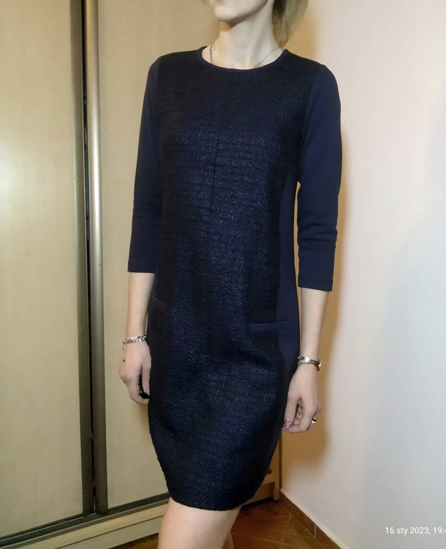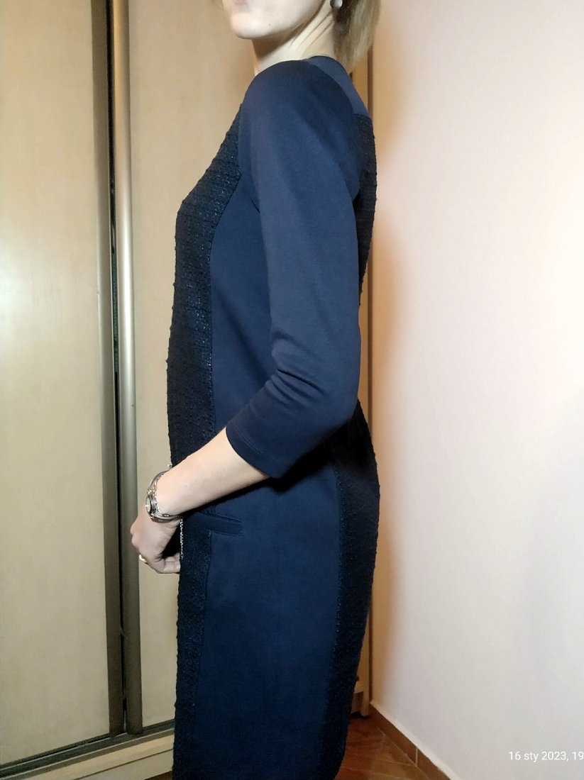 Tagi: #bawełna, #długi rękaw, #granatowa sukienka, #sukienka biurowa