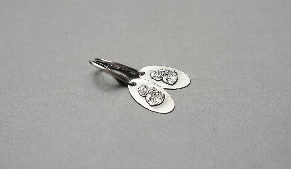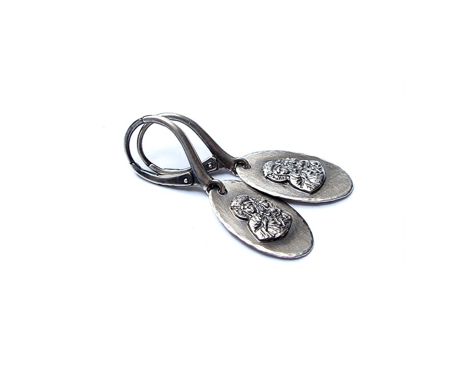 Kolczyki wykonane własnoręcznie ze srebra [pr. 925]. Wielkość blaszek [21mm x12mm] . Srebro oksydowane i przecierane. Biżuteria ozdobnie zapakowana. Do kompletu można dopasować naszyjnik -dostępny w naszej galerii.