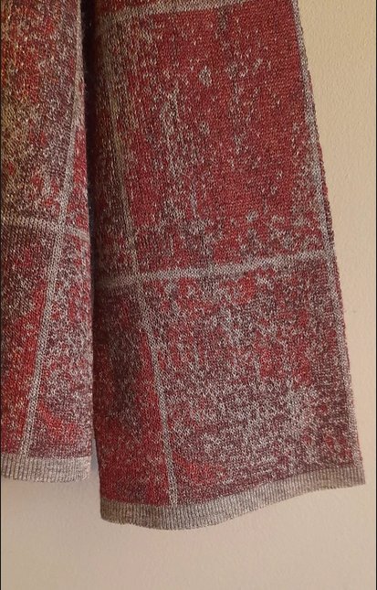 Nowy bez papierowej metki krótki pudełkowy sweter oversize cienki lekko szorstki z dyskretną błyszczącą nitką całość bardzo stylowa długość 44 szerokość 72 rękaw 3/4 świetny nietypowy zestaw kolorystyczny cegła szary