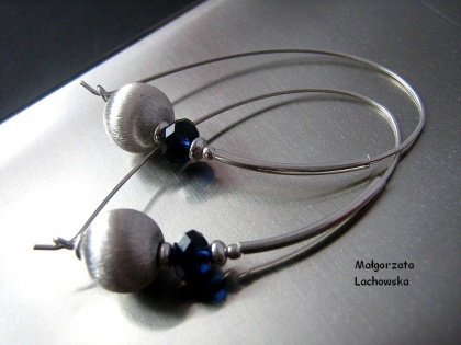 Eleganckie kolczyki wykoanne ze srebra próby 925, w tym satynowej kuli wielkosci 10 mm oraz kryształków Swarovskiego. Długość kolczyków wynosi 4,8 cm.