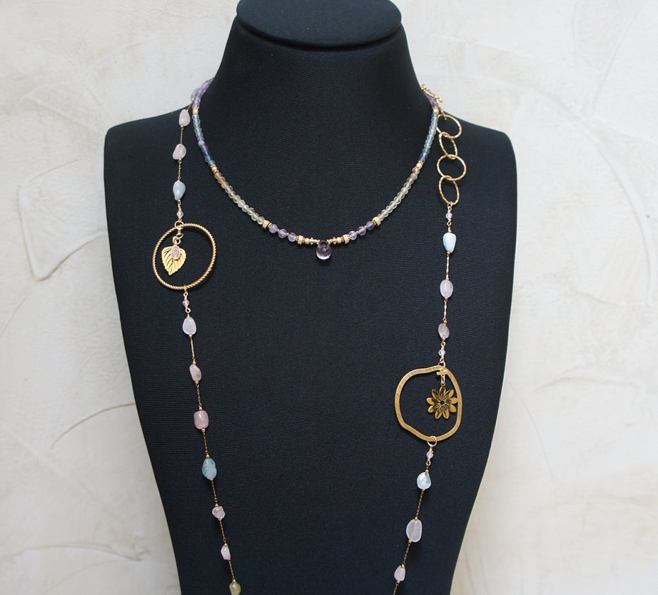 Tagi: #długi naszyjnik, #morganit, #naszyjnik z minerałów, #stal szlachetna