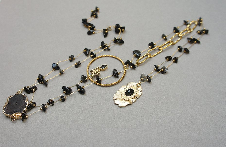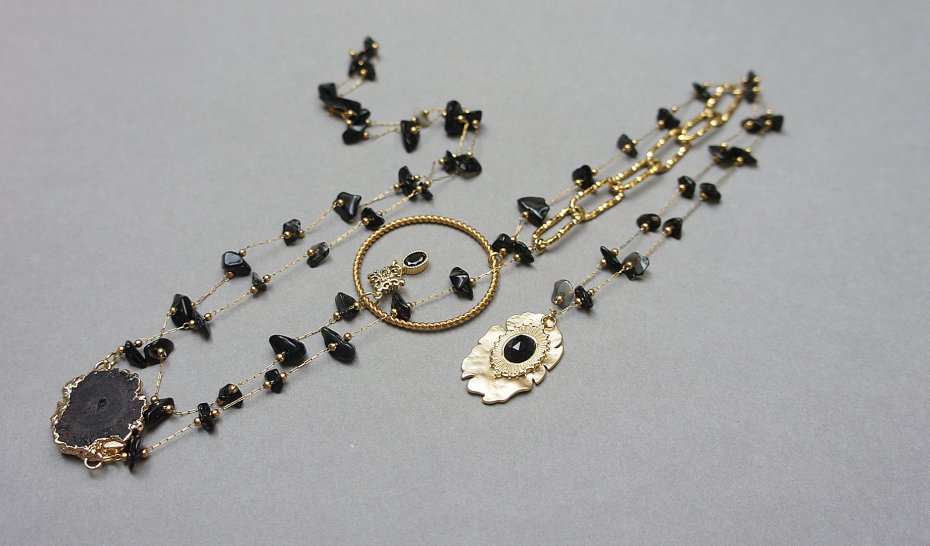 Tagi: #długi naszyjnik, #naszyjnik z minerałów, #onyks, #stal szlachetna