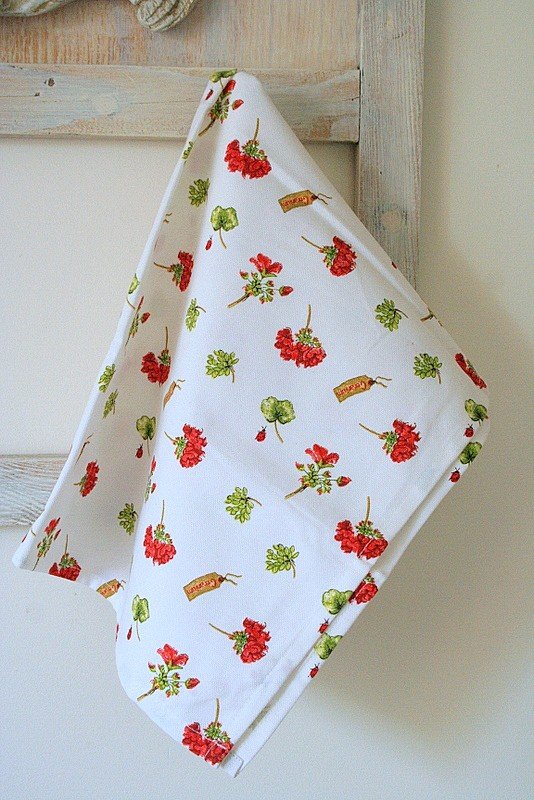 Fajna kuchenna ściereczka. Biała w pelargonie i i inne ziółka...