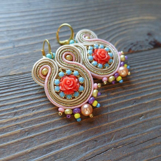 Kolczyki wykonane metodą haftu sutasz (soutache).