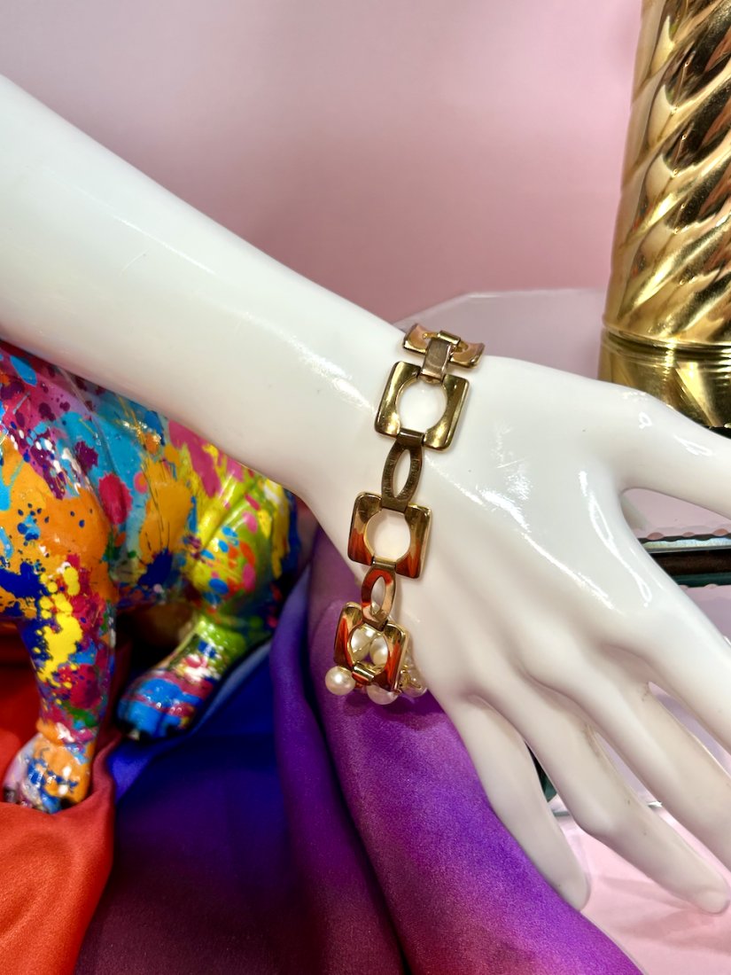 Bransoletka segmentowa z perłami vintage.