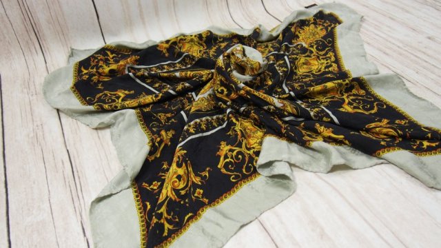 Jedwabna chusta w królewskie wzory. senso di donna. Chusta obszyta ręcznie.