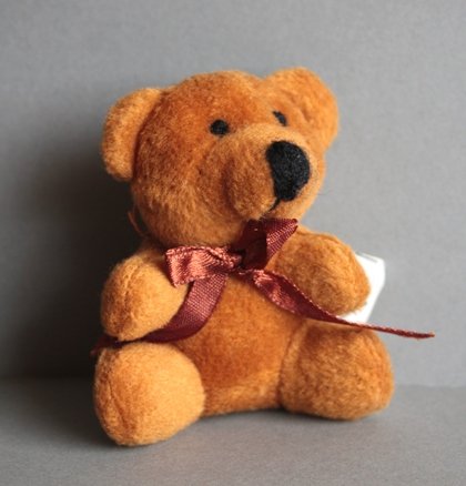 Sympatyczny miś o czarnych oczkach. Ze wstążeczką na szyi - bardzo elegancki:)