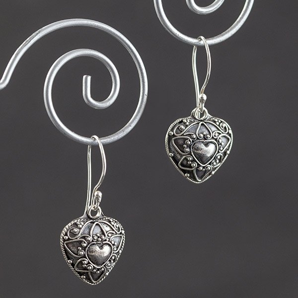 Kolczyki w całości wykonane ręcznie ze srebra próby 925. Wielkość ozdobnych serduszek 15x14mm. Długość całkowita kolczyków 3,1 cm. Kolczyki zostaną ozdobnie zapakowane.