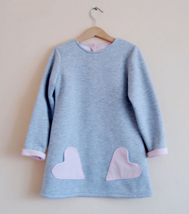 jasnoszara tuniko-sukienka wykonana z wysokiej jakości dzianiny bawełnianej od wewnątrz posiadającej biały puszek. Z tyłu zapinana na guziczki na karczku. Sukieneczka jest ozdobiona pięknymi kieszonkami w kształcie serduszek. Uniwersalna, niepowtarzalna, idealna zarówno na małe jak i wielkie wyjścia. Możliwość wyboru koloru kieszeni przez klienta. Rozmiary możliwe do uszycia: 80, 86,92,98,104,110. Po zakupie proszę o podanie rozmiaru