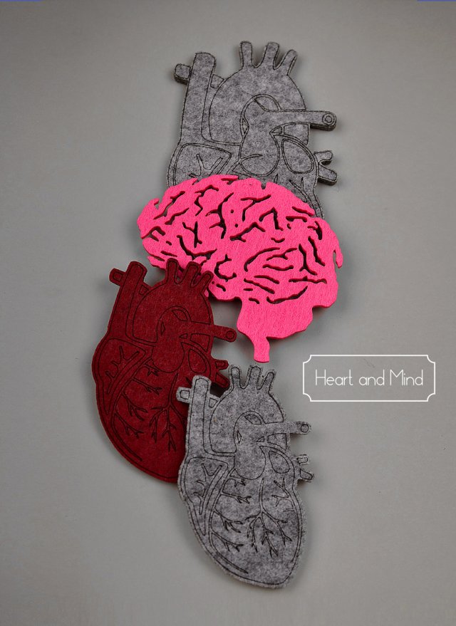 broszka filcowa w kształcie serca anatomicznego