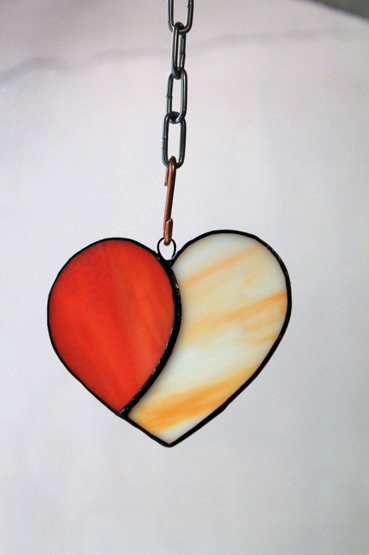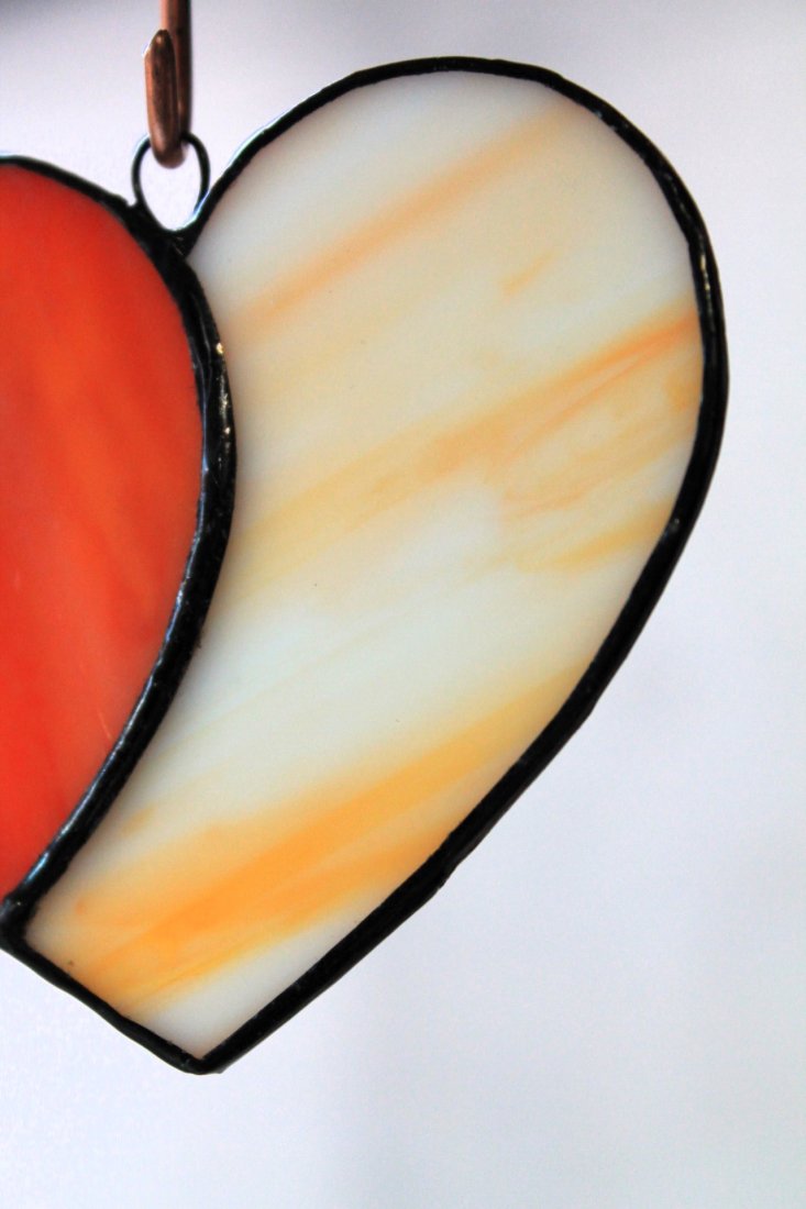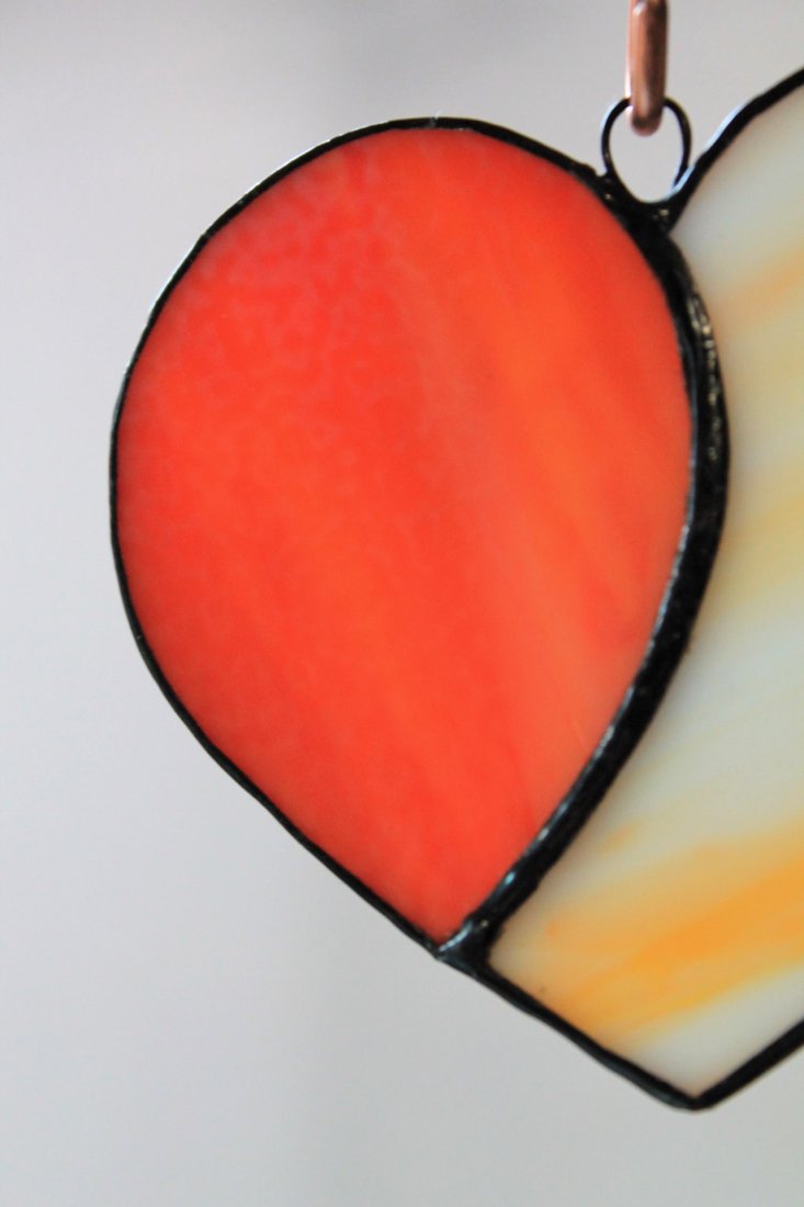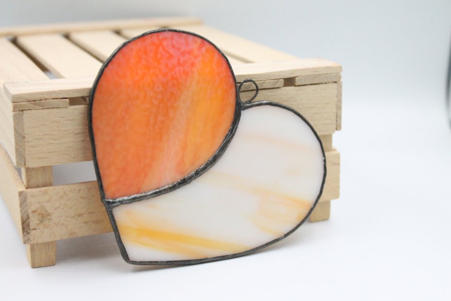 Serce Bliskość to ręcznie wykonana witrażowa zawieszka, która mówi "kocham Cię" bez słów. Pomarańczowo-biała kolorystyka i szkło z charakterem tworzą ciepły, emocjonalny akcent – idealny na prezent od serca.