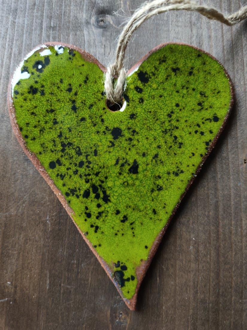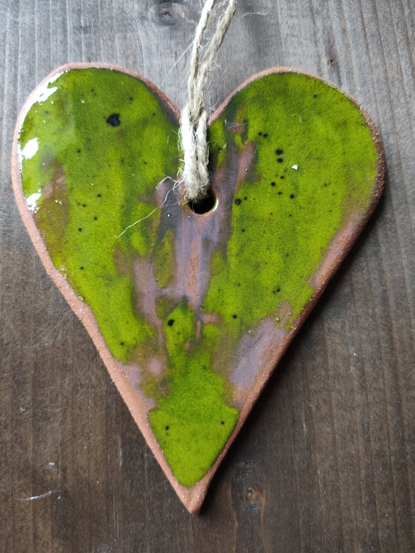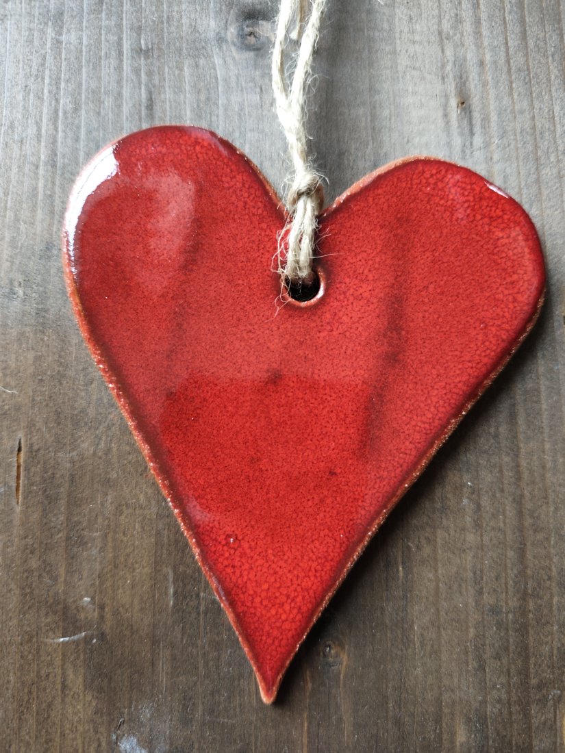 Serce ceramiczne, wykonane z gliny czerwonej, pokryte szkliwami i dwukrotnie wypalane w piecu ceramicznym. Uroczy dodatek do Twego wnętrza.