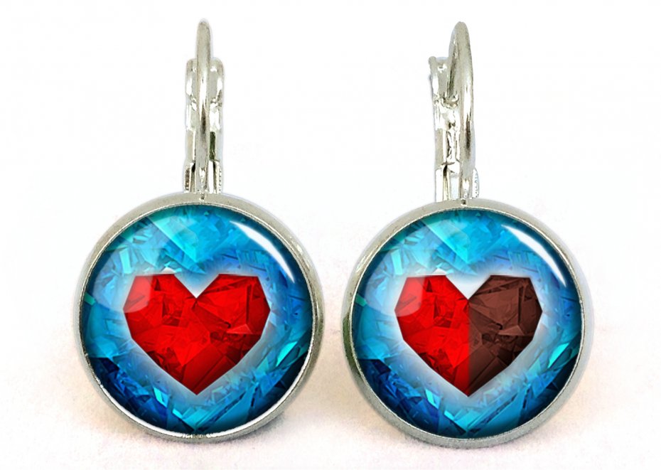 Ręcznie robione kolczyki wiszące z wysokiej jakości grafiką pokrytą wypukłym, powiększającym szkiełkiem.