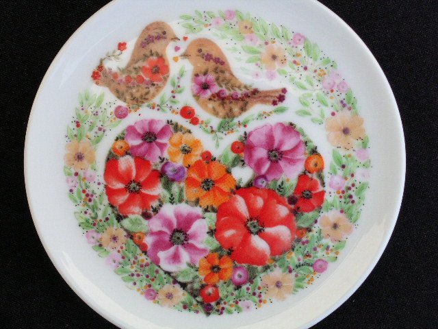 Talerzyk porcelanowy, sygnowany, z bajecznie barwnej serii Collection Coeur. W pełni użytkowy. Aż świeci kolorami :)