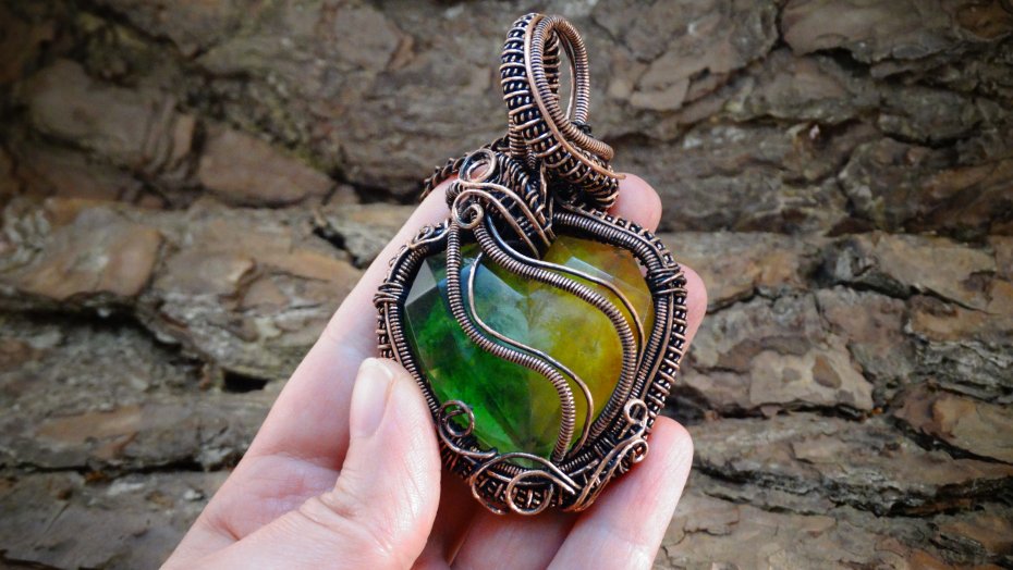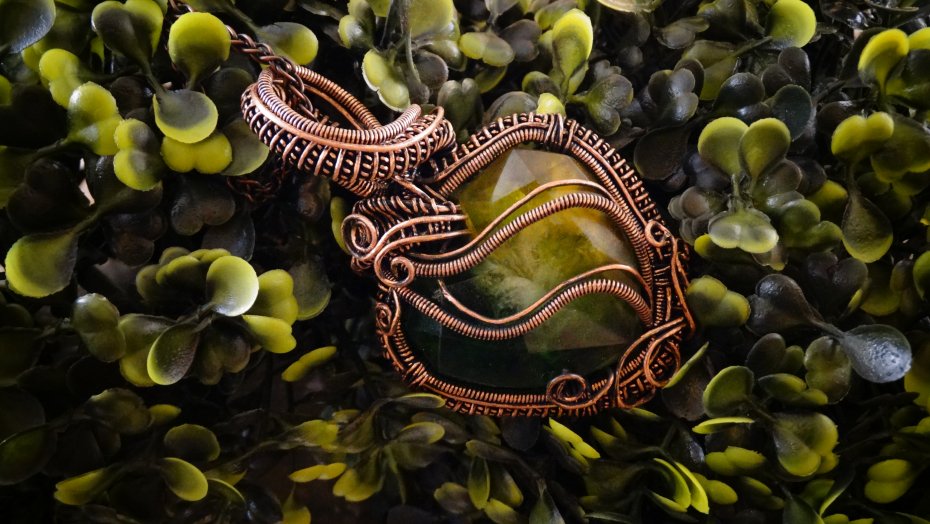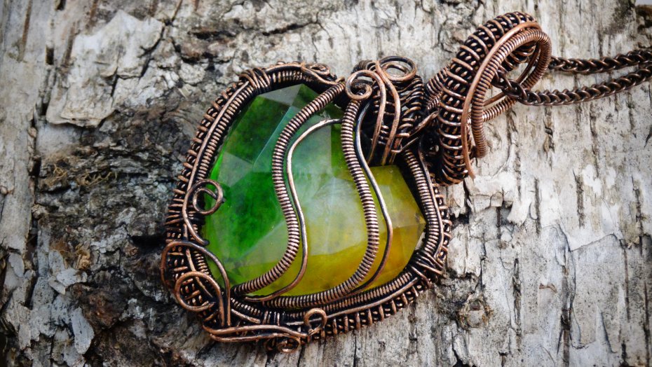Tagi: #miedziany, #naszyjnik z wisiorem, #wire wrapping, #żywica epoksydowa