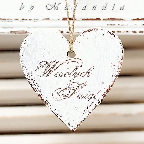 Serdeczna zawieszka drewniana, ozdobiona życzeniami. Zawieszona w dowolnym miejscu domu, podkreśli ciepłą i serdeczną atmosferę w nim panującą. Świetnie nadaje się na dodatek do prezentów, ozdobę choinkową, dekorację domu.