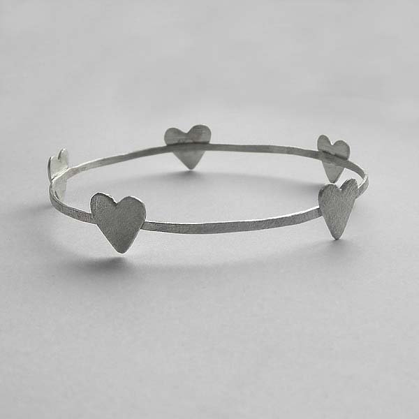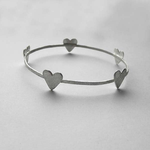 Bransoleta wykonana jest ze srebra pr. 925 Serbro - zmatowione. Srednica bransoletki - 6,5 cm Wielkość serduszka - ok 1,2 cm / 1,2cm . Termin realizacji zamówienia to 1-2 dni.