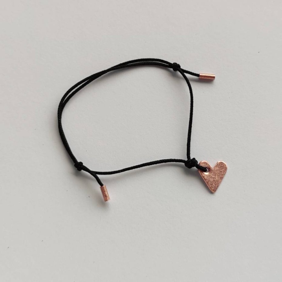 Serduszko bransoletka - uroczy dodatek . Idealna dla kobiet ceniące ładną oraz oryginalna biżuterii. Bransoletka wykonana jest z miedź, ozdobny sznurek. Miedź zmatowiony. Długość zawieszki - ok. 1 cm. Szerokość zawieszki - ok. 1 cm.