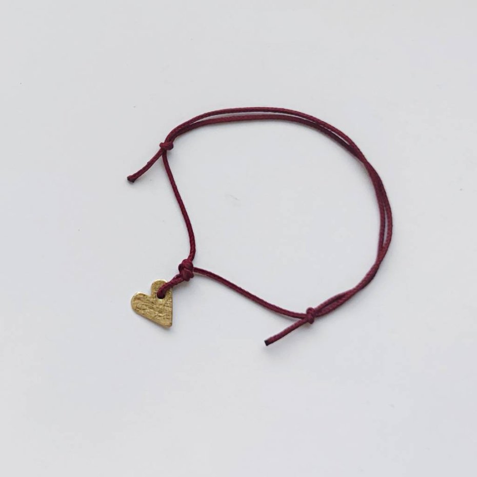 Serduszko bransoletka - uroczy dodatek. Bransoletka wykonana jest z mosiądz, ozdobny sznurek. Mosiądz zmatowiony. Długość zawieszki - ok. 1 cm. Szerokość zawieszki - ok. 1 cm.