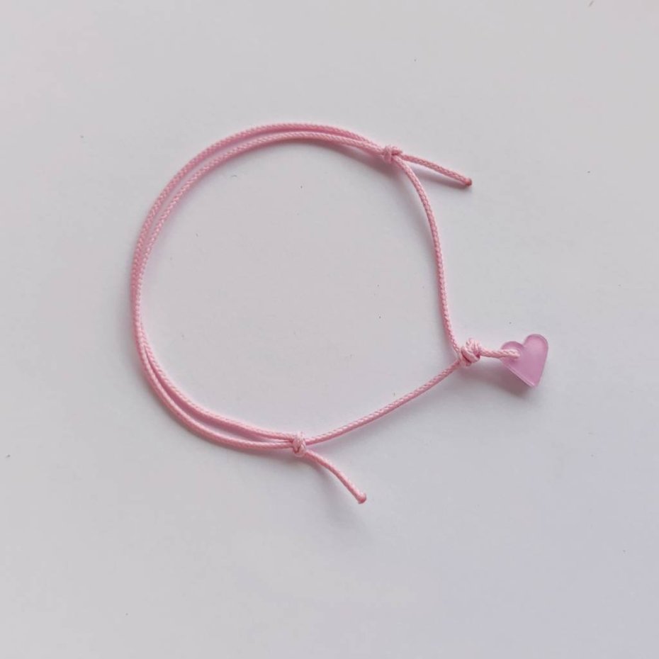Serduszko bransoletka - uroczy dodatek . Bransoletka wykonana jest z: Tworzywo sztuczne, ozdobny sznurek. Tworzywo sztuczne - przezroczyste . Długość zawieszki - ok 0,7 cm. Szerokość zawieszki - 0,7cm