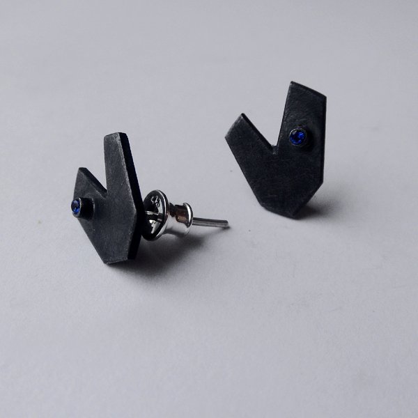 Kolczyki na sztyftach wykonane są ze srebra, cyrkonia. Srebro - próby 0,925, zmatowione, oksydowane. Wysokość 15 mm. Szerokość 12mm. Waga - ok. 3g . Termin realizacji zamówienia to 1-2 dni