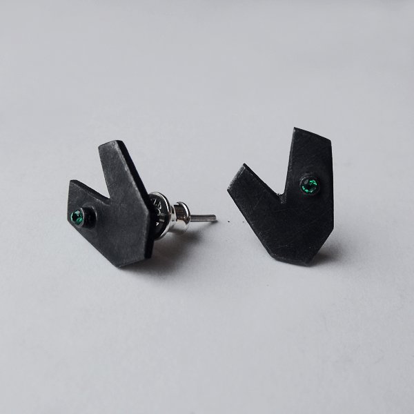 Kolczyki na sztyftach wykonane są ze srebra, cyrkonia. Srebro - próby 0,925, zmatowione, oksydowane. Wysokość 15 mm. Szerokość 12mm. Waga - ok. 3g . Termin realizacji zamówienia to 1-2 dni