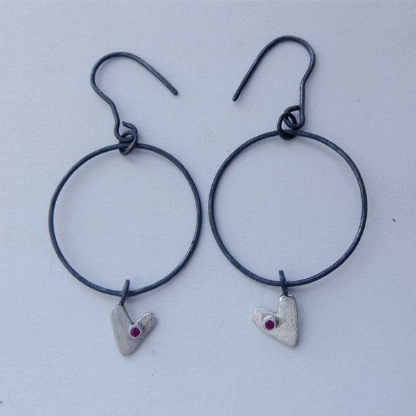 Kolczyki wykonane są ze srebra, cyrkonia. Srebro - próby 0,925, zmatowione,oksydowane .Wielkość serduszka 1cm/1cm Długość kolczyków z biglami - 6 cm. Szerokość ok. 3 cm