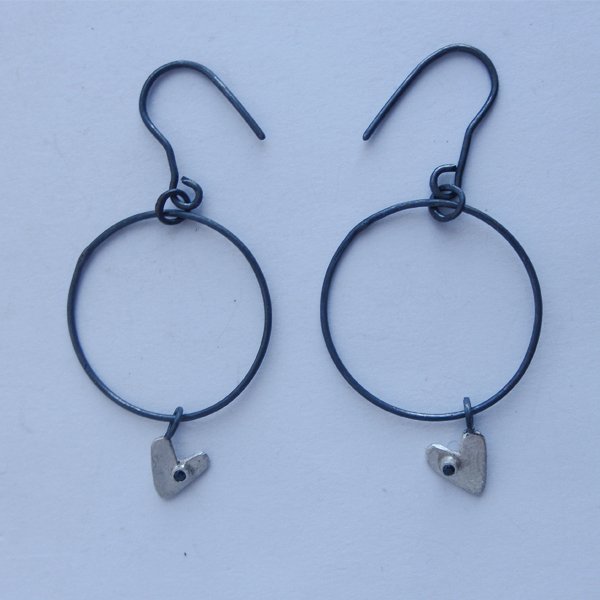 Kolczyki wykonane są ze srebra, cyrkonia. Srebro - próby 0,925, zmatowione,oksydowane .Wielkość serduszka 1cm/1cm Długość kolczyków z biglami - 6 cm. Szerokość ok. 3 cm