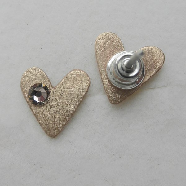 Kolczyki na sztyftach wykonane są z brązu, kryształ SWAROVSKI ELEMENTS (Wymiary: 3x3.2mm ). Brąz zmatowiony. Szerokość 1 cm. Waga - ok. 2g