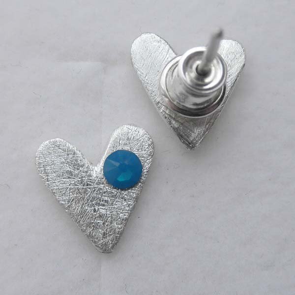 Kolczyki na sztyftach wykonane są z srebra, kryształ SWAROVSKI ELEMENTS (Wymiary: 3x3.2mm ). Srebro zmatowione. Szerokość 1 cm. Waga - ok. 2g