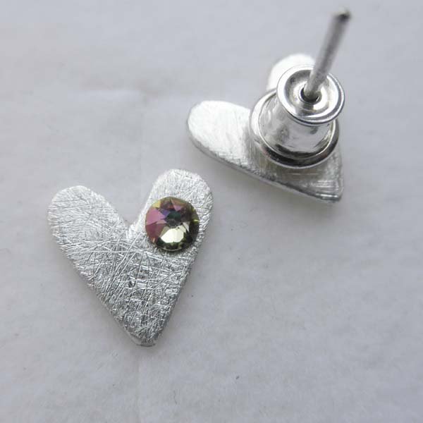 Kolczyki na sztyftach wykonane są z srebra, kryształ SWAROVSKI ELEMENTS (Wymiary: 3x3.2mm ). Srebro zmatowione. Szerokość 1 cm. Waga - ok. 2g