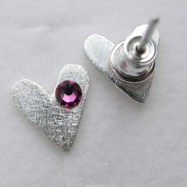 Kolczyki na sztyftach wykonane są z srebra, kryształ SWAROVSKI ELEMENTS (Wymiary: 3x3.2mm ). Srebro zmatowione. Szerokość 1 cm. Waga - ok. 2g