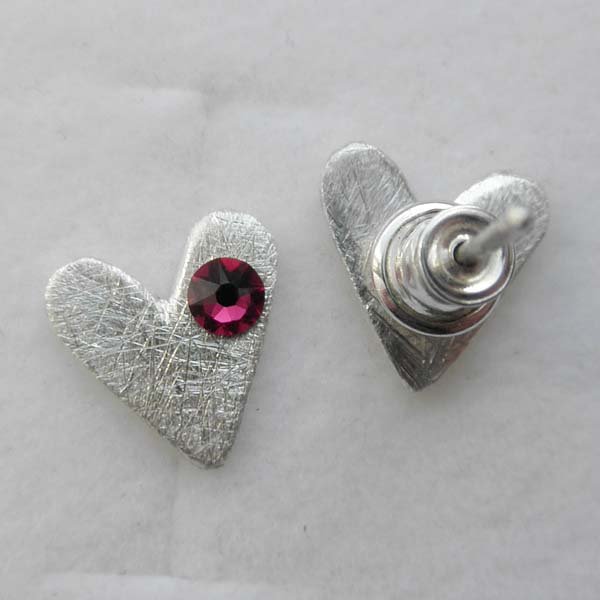 Kolczyki na sztyftach wykonane są z srebra, kryształ SWAROVSKI ELEMENTS (Wymiary: 3x3.2mm ). Srebro zmatowione. Szerokość 1 cm. Waga - ok. 2g