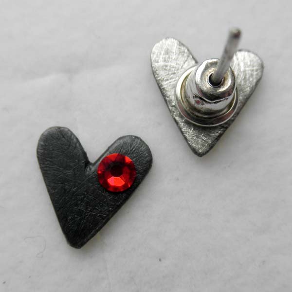 Kolczyki na sztyftach wykonane są z srebra, kryształ SWAROVSKI ELEMENTS (Wymiary: 3x3.2mm ). Srebro zmatowione, oksydowane. Szerokość 1 cm. Waga - ok. 2g