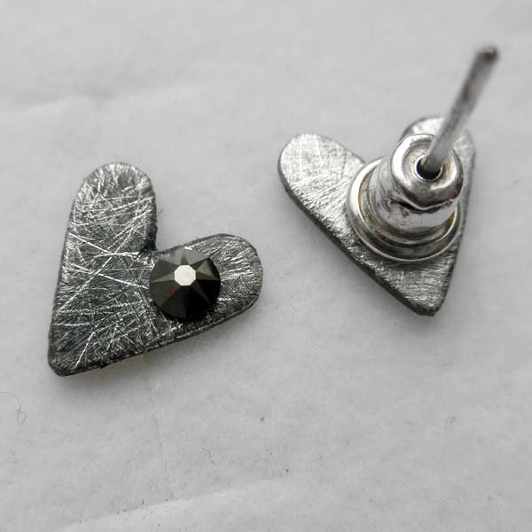 Kolczyki na sztyftach wykonane są z srebra, kryształ SWAROVSKI ELEMENTS (Wymiary: 3x3.2mm ). Srebro zmatowione, oksydowane. Szerokość 1 cm. Waga - ok. 2g