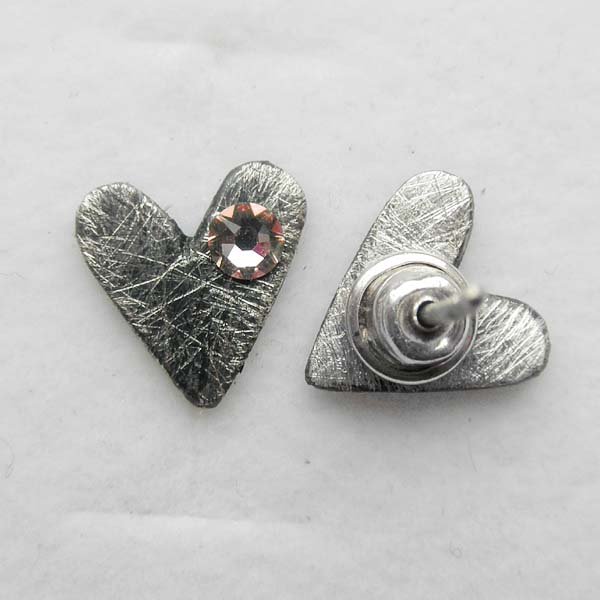 Kolczyki na sztyftach wykonane są z srebra, kryształ SWAROVSKI ELEMENTS (Wymiary: 3x3.2mm ). Srebro zmatowione, oksydowane. Szerokość 1 cm. Waga - ok. 2g