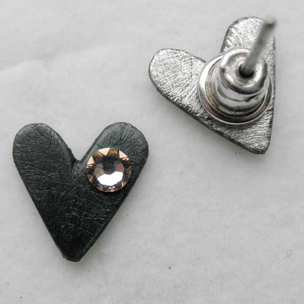 Kolczyki na sztyftach wykonane są z srebra, kryształ SWAROVSKI ELEMENTS (Wymiary: 3x3.2mm ). Srebro zmatowione, oksydowane. Szerokość 1 cm. Waga - ok. 2g