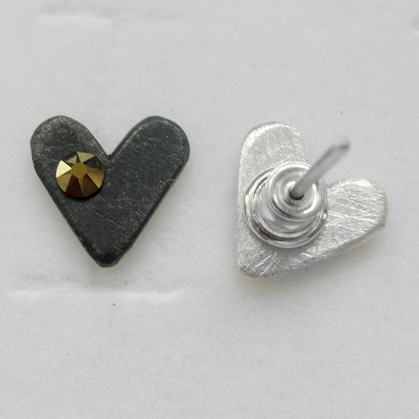 Kolczyki na sztyftach wykonane są z srebra, kryształ SWAROVSKI ELEMENTS (Wymiary: 3x3.2mm ). Srebro zmatowione, oksydowane. Szerokość 1 cm. Waga - ok. 2g