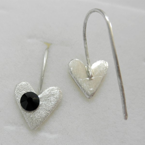 Kolczyki wykonane są ze srebra, kryształ SWAROVSKI ELEMENTS (Wymiary: 3x3.2mm ). Srebro - próby 0,925, zmatowione Wielkość serduszka 1cm/1cm Długość kolczyków - 2 cm