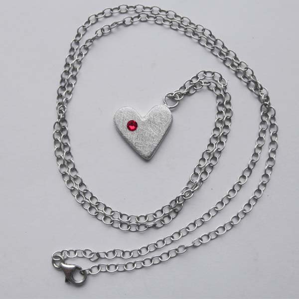 Wisior wykonany jest ze srebra, kryształ SWAROVSKI ELEMENTS (Wymiary: 3x3.2mm ). Srebro - próby 0,925, zmatowione Długość łańcuszka: ok 60 cm. ( możliwość regulacji długości) zapięcie: karabińczyk. Wielkość serduszka 1,7cm/1,7cm