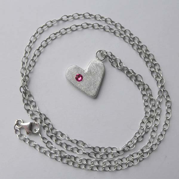 Wisior wykonany jest ze srebra, kryształ SWAROVSKI ELEMENTS (Wymiary: 3x3.2mm ). Srebro - próby 0,925, zmatowione Długość łańcuszka: ok 60 cm. ( możliwość regulacji długości) zapięcie: karabińczyk. Wielkość serduszka 1,7cm/1,7cm