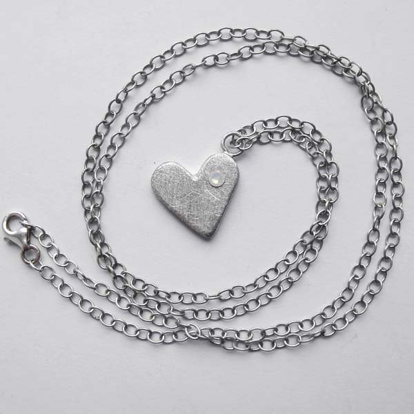 Wisior wykonany jest ze srebra, kryształ SWAROVSKI ELEMENTS (Wymiary: 3x3.2mm ). Srebro - próby 0,925, zmatowione Długość łańcuszka: ok 60 cm. ( możliwość regulacji długości) zapięcie: karabińczyk. Wielkość serduszka 1,7cm/1,7cm