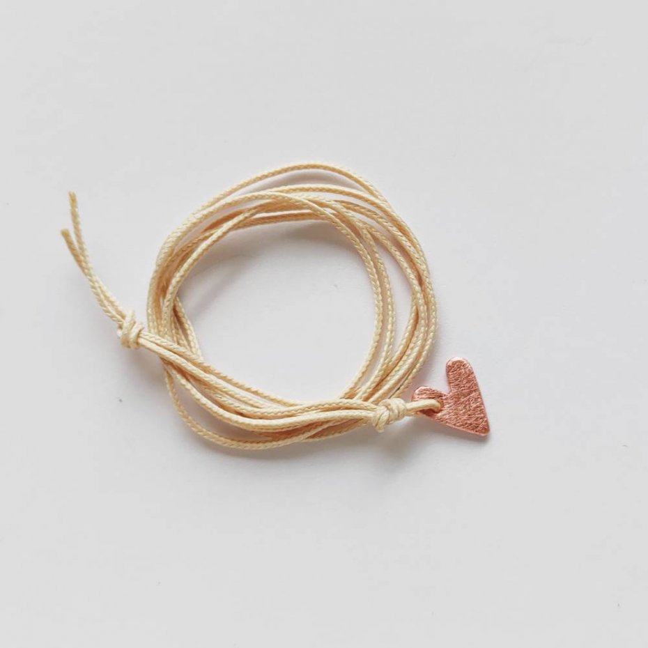 Wisiorek wykonany jest z: miedź, zmatowione, ozdobny sznurek. Miedź - zmatowiona. Długość zawieszki - ok. 1 cm. Szerokość zawieszki - ok. 1 cm.Długość sznurka ok. 60 cm. Istnieje możliwość wykonania wisiorka o innym kolorze sznurka