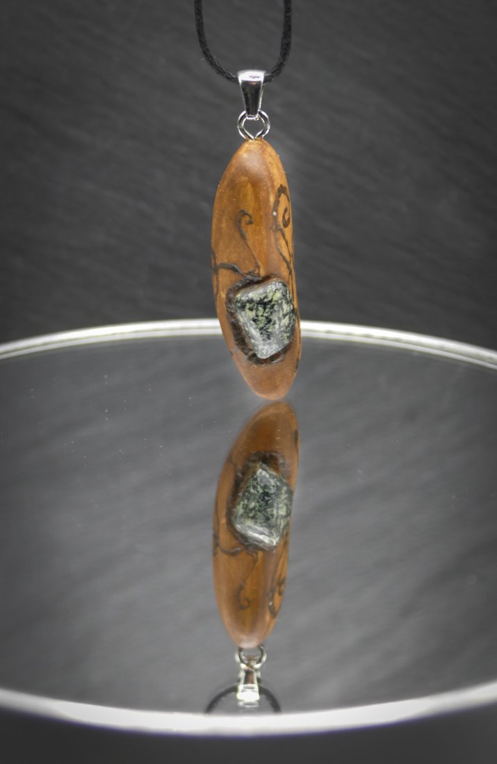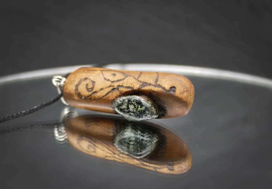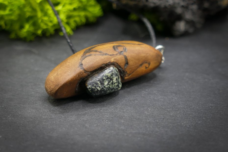 W centralnym punkcie znajduje się serpentynit umieszczony w precyzyjnie wyżłobionym zagłębieniu.