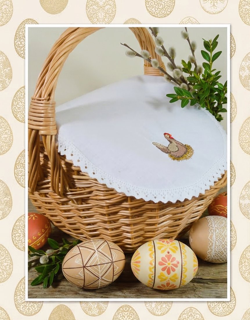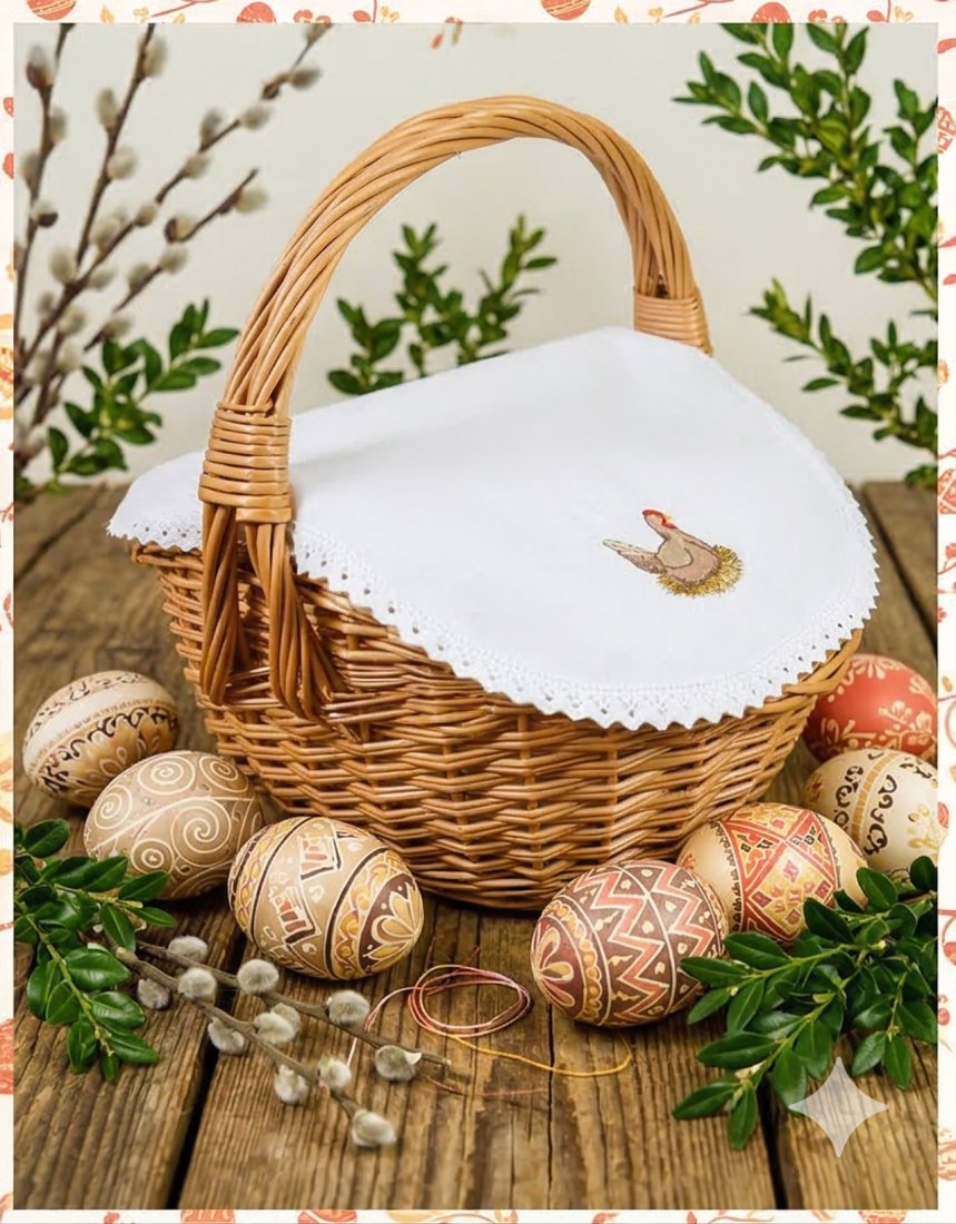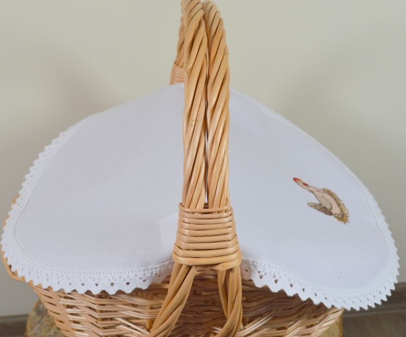 Przedstawiamy unikatową bawełnianą serwetkę do przykrycia święconki, wykonaną w naszej pracowni. Urocze hafty, dodają niepowtarzalnego charakteru! Oddajemy w Państwa ręce produkt wysokiej jakości, wielokrotnego użytku.