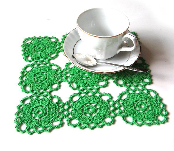 Przepiękna serwetka robiona na szydełku w wyrazistym, zielonym kolorze. Posiada ciekawy wzór, pięknie prezentuje się we wnętrzu, polecam,