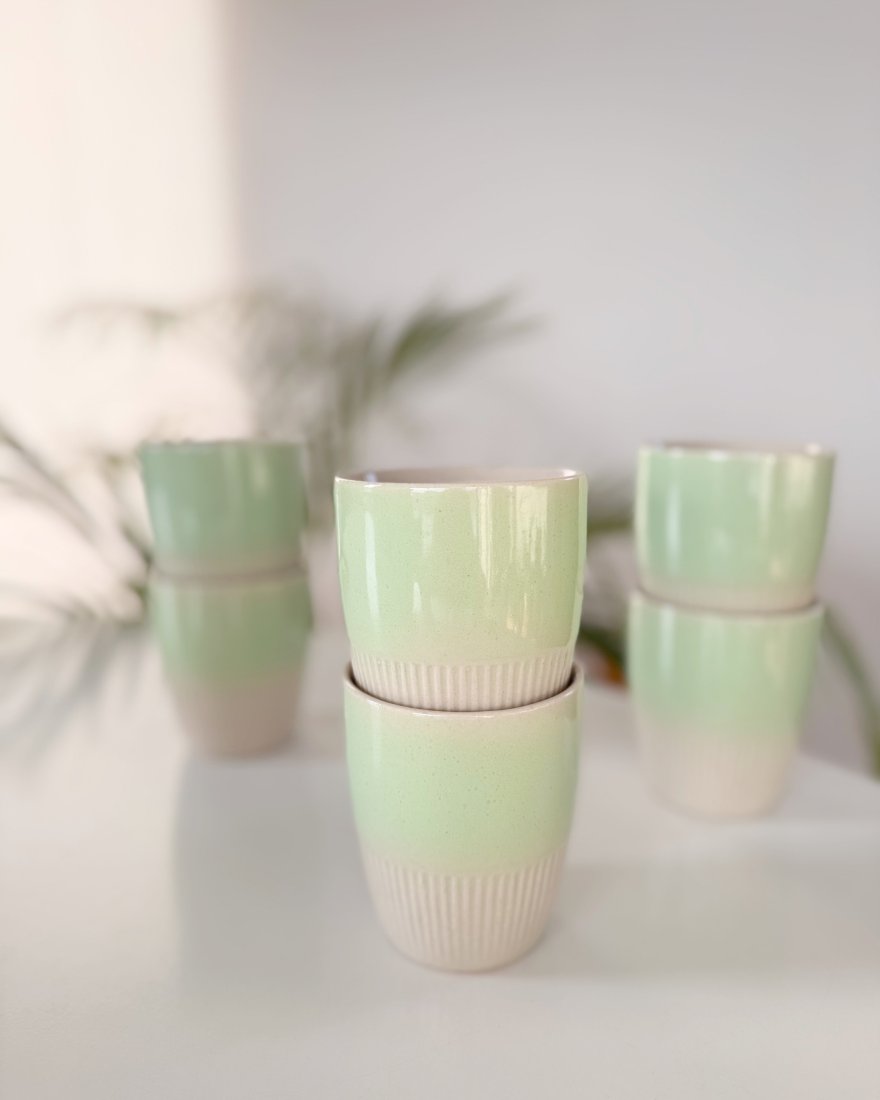 Kubki są w idealnym stanie, wyglądają na nieużywane.