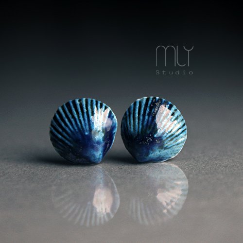 Ceramiczne kolczyki w formie sztyftów, ręcznie wykonane z delikatnej jasnobeżowej gliny kamionkowej, jednostronnie szkliwione mieszanką błękitnego szkliwa, na sztyftach w kolorze srebrnym.Średnica ok. 12mm.. Polecam