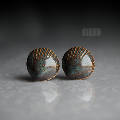 Ceramiczne, lekko nieregularne kolczyki w formie sztyftów, ręcznie wykonane z delikatnej gliny kamionkowej, jednostronnie szkliwione mieszanką zielono brązowych szkliw z efektem plamek i subtelnym połyskiem, na antyalergicznych sztyftach w kolorze srebrnym. Średnica ok. 12mm.Polecam. Termin realizacji zamówienia to 1-2 dni
