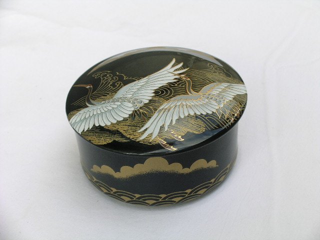 Ciekawe, eleganckie i efektowne puzdro porcelanowe, sygnowane, japońskie, szlachetne. Intrygujące połączenie złoceń z połyskiem głębokiej, lśniącej czerni. Malatura lekko fakturowa. Jakość wykonania i błyszcząco-satynowe wykończenie. Niecałe 10 x 6 cm. Stan zachowania bardzo dobry.